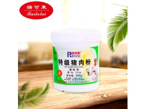 2、將豬肉依次加入鹽,特級(jí)豬肉粉,糖,叉燒醬,酒,生抽,老抽,蠔油,蒜末等材料。
